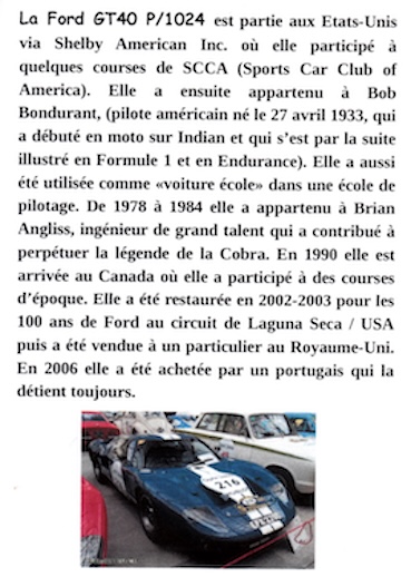 Après cette course elle a été achetée par Claude Nahum au début 2004. Elle a rejoint sa collection privée qu’il a constituée en Suisse où elle est avec 2 autres Ford GT 40, entre autres.
