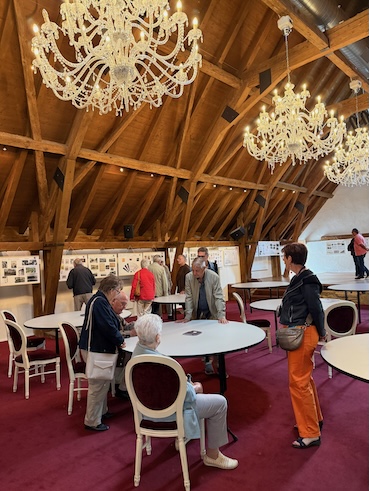 Le 11 septembre, 22 membres de la Confrérie prennent le car, direction le Château de Salavaux. Nous y sommes accueillis par M. Lauper. Il nous présente sa magnifique exposition. Elle rassemble étiquettes et documents des vignerons de tous les villages viticoles du Vully, une superbe découverte.