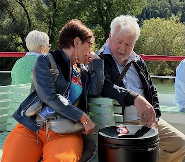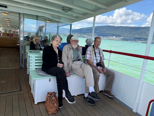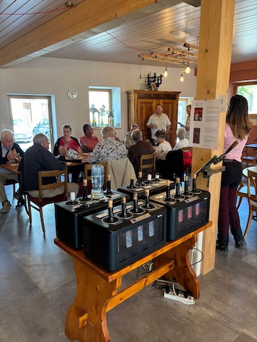 La famille Gentizon nous reçoit dans son carnotzet. Suite à la présentation du domaine, nous dégustons les excellents vins blancs et rouges de la cave. Le réputé gâteau du Vully accompagne à merveille ce généreux apéritif. Un grand merci à Mme et M. Gentizon.