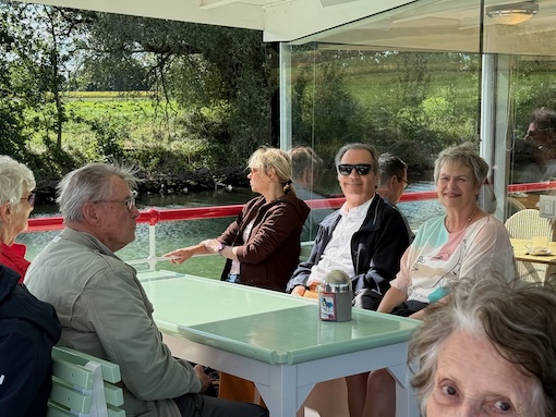 Nous dégustons les délicieux filets de perche du lac de Morat au restaurant des Garinettes à Vallamand. Les membres transmettent leurs félicitations pour ce succulent repas et le service.